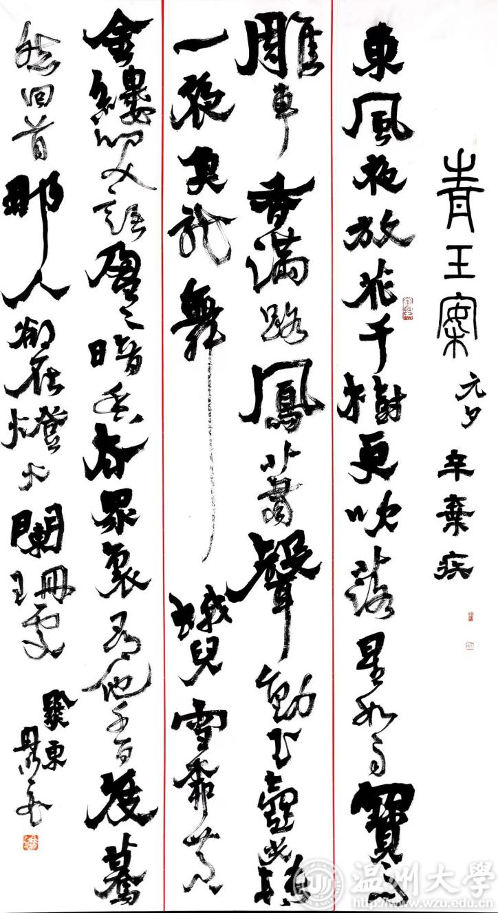 为进一步推进学校美育建设工作,服务我校教职工日常文化生活,KY开元集团官网入口将于2023—2024第一学期组织开展「书法公益课堂」。开课时间2023年11月1日——2024年1月6日上课地点KY开元集团官网入口美术馆一楼美育教室(KY开元集团官网入口校友之家对面)年龄限制少儿毛笔书法 :小学3年级以上成人:不限招生人数少儿毛笔书法:20——25人成人毛笔书法:20——25人教学团队教师团队:KY开元集团官网入口书法学专业教师团队课程助理:KY开元集团官网入口书法学专业在校生课程目标掌握毛笔书法基本书写规范和要求;具备对某一碑帖的审美欣赏和解读能力;能够较为熟练的掌握某一经典碑帖的临摹技法。课程要求报名后尽量全勤,中途连续缺勤3次者自动退出本学期公益课堂材料费100元/人教师简介朱国平,教授/硕士生导师/博士。江苏省“五个一批”人才 ,常州市中青年专业技术拔尖人才 ,中国书法家协会会员,上海市书画院特聘画师 ,常州画院画师,KY开元集团官网入口书法学专业负责人,常州市书法家协会顾问,书法作品分别获第一、二、五届中国书法兰亭奖创作奖、艺术奖 、佳作奖,入展第八 、十 、十一届全国书法篆刻展等20余次“全国展 ”,在江、浙两省省级展览中获八次金奖。有多幅作品被各级博物馆美术馆收藏,曾多次举办个人书画展及联展。主持浙江省哲学社会科学后期资助项目“书法对绘画的影响研究”1项,参与国家社会科学基金重大委托项目及一般项目各1项,发表学术论文多篇。出版专著《书法对绘画的影响研究》、《在大学课堂听书法课》2部 ,出版有《朱国平书法作品集》、 《当代江苏青年书法家——朱国平卷》2部。行书恽南田书画手稿一则行书自作诗四首楼晓勉,毕业于中国美术学院国画系书法篆刻专业。现为KY开元集团官网入口副教授、美术系副主任。中国书法家协会会员、浙江省书法家协会女书法家委员会副主席、温州市书法家协会副主席、温州市女书法家协会主席。书法篆刻作品参展西泠印社首届、二届国际篆刻书法作品大展,全国第四届篆刻艺术展,全国第三届楹联书法大展等。论文发表于《中国书法》《新美术》《书画教育》等专业刊物。主编或参与编写《历代小楷精选》、《中国高等院校美术设计教研大系—书法篆刻卷》等书籍。出版《楼晓勉书法作品集》。隶书条幅行草条幅高玥,山东临清人,中国艺术研究院博士,KY开元集团官网入口书法学专业教师。中国书法家协会会员、安徽省书法家协会篆刻委员会委员、浙江省青年书法家协会教育委员会副主任、中国标准草书学社社员。 作品参展全国首届楷书作品展、全国首届王羲之奖书法作品展、“西泠印社第十届篆刻艺术评展”等。在《南京艺术学院学报·美术与设计版》《艺术百家》《西泠艺丛》等杂志发表论文多篇,作品散见于《书法报》《书法导报》《中国篆刻》等。篆刻四条屏隶书《史记·河渠书》节录冉明, 贵州铜仁人,土家族,2008年、2011年、2022年分别获中国美术学院书法专业学士、硕士、博士学位;现为KY开元集团官网入口教师、书法产教融合研究中心主任;中国美术学院特聘教师;浙江省青年书协学术委员会委员,西湖区书协理事,教育部课题2项在研,出版有《冉明学书履迹》《新书谱•颜勤礼碑》等。草书三条屏草书条幅陆嘉磊,KY开元集团官网入口讲师。1992年生于浙江杭州。中国美术学院博士。现任杭州市青年文联会员、浙江省青年书法家协会篆刻委员会副秘书长。研究论文发表于《美术》、《美术大观》、《美术教育研究》等核心期刊,作为第三责任人参与国家艺术基金项目《百年巨匠——浙派艺术大家群像》、第二责任人参与国家艺术基金项目《传统文化名句组印》、第三负责人参与浙江文化艺术发展基金项目《宋韵朱痕——两宋诗词名句组印并跋百品》等系列课题。李阳冰《三坟记》临摹篆书条幅《世说新语》选录陈建胜,KY开元集团官网入口教师、台湾中兴大学博士、中国美术学院外聘教师。浙江省书法研究会理事、中国文字学会会员(台湾)。著有《说文部首源流——字体演变与形义图释》(上、下册)一书及合著4部,发表学术论文10余篇。行楷《大司命》隶书 修身积德联教学环境KY开元集团官网入口美术馆位于KY开元集团官网入口北校区西南位置,建设改造项目总投资2600万元,总面积20000平方米,建筑使用面积4000平方米,拥有特展馆、典藏馆、数字艺术等4个展厅,展线600米,并设有多功能大厅、美育教室、水上T台、休闲吧、库房、会议接待室等配套设施,是浙江省综合性高校中占地面积最大、温州地区展线最长的展馆,也是全国唯一拥有数字艺术展厅和水上T台的高校美术馆。报名事宜报名截止时间:10月28日12时止联系人: 尹乃军老师、高玥老师电话:13705882414、18205611225暑假公益班掠影