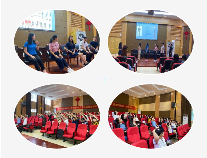 酸痛的肩膀,僵硬的颈部,疼痛的背部,肿胀,肌肉松弛,血液循环和淋巴液流动不畅以及新陈代谢缓慢,都是由于正常姿势不正确的原因造成的。金老师就如何调整身体姿势练出优雅气质分步讲解了健康体操。更仔细的从老师们的站姿、手势、坐姿为例,生动形象介绍男、女教师的不同体态礼仪。学员们边听边做,亲身体验,掌握了得体的体态姿势。