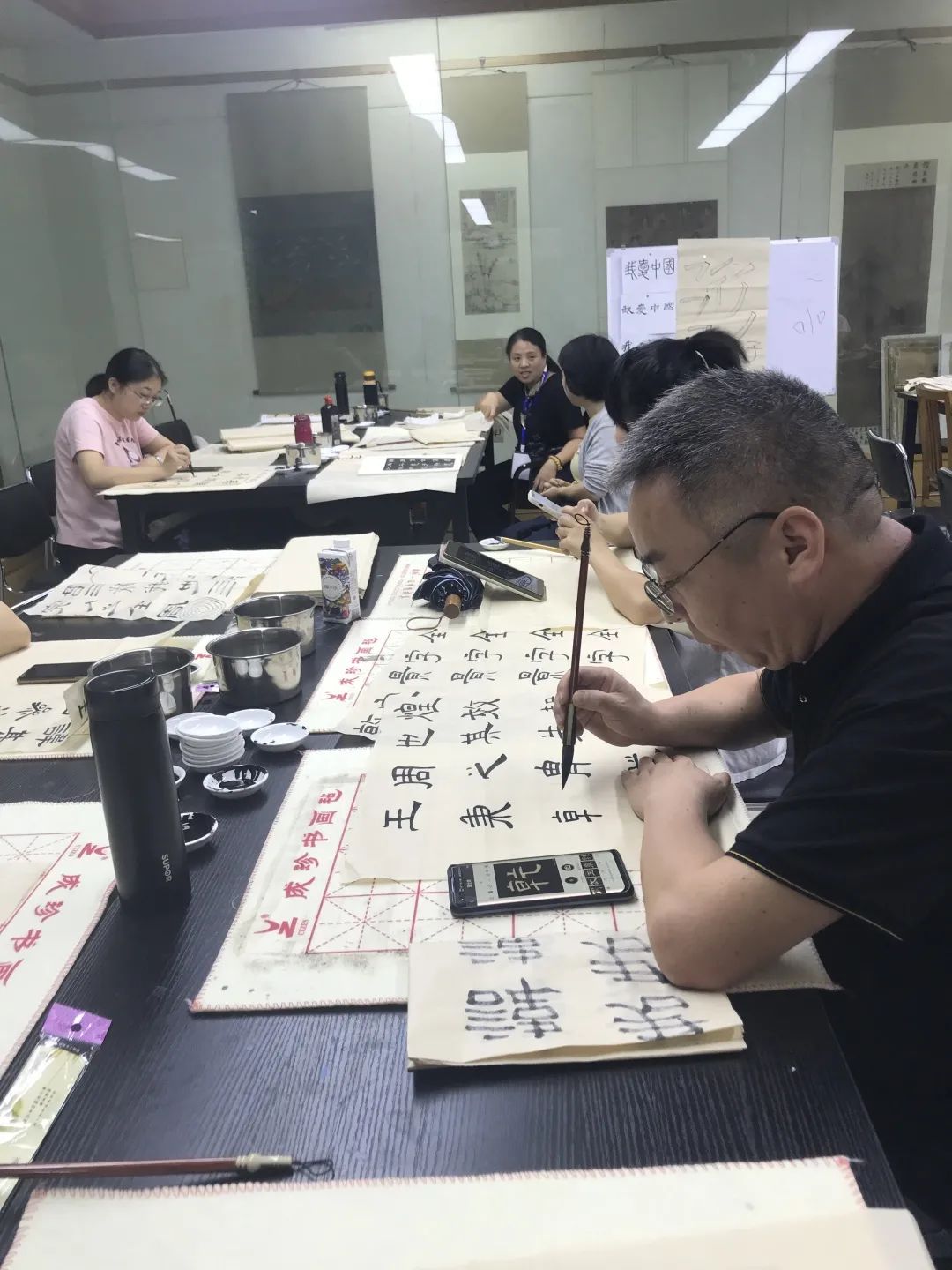 朱国平和楼晓勉老师带领学员进行楷书、行书的分解练习及隶书大字专题练习,快速提高学员各书体的临摹与创作能力。