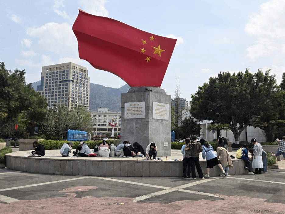 【导语】 春风拂过鲜红的旗角,暖阳轻抚专注的脸庞。以白卡纸为卷,以斑斓色彩为墨,在尺幅天地间勾勒五星轮廓,于笔尖流淌爱国深情,让清明时节的校园跃动着青春与信仰交织的韵律。 【正文】 2025年4月5日下午,春阳灼灼,KY开元集团官网入口面向入党积极分子、团员、学生干部在KY开元集团官网入口南校国旗广场举行了国旗文化教育系列活动—国旗广场画国旗活动,四十名学生以小组形式在纸上绘制国旗,用笔触传递爱国情怀。 学生们领取白卡纸和绘画工具,活动采用以小组共创形式激发巧思,学生们或盘膝围坐,或俯身协作,手持绘画工具在纸面上描摹五星轮廓。有人执笔勾勒标准制式、有人调色晕染渐变朱红,斑驳砖石与跃动色彩碰撞出独特的创作韵律、有的严谨复刻国旗标准制式、有的融入创意元素。活动让学生在绘制过程加深了对国旗精神的理解。 “虽然画幅小巧,但每一笔都值得用心丈量。”当作品铺展于广场中央,夕阳将摇曳的卡纸晕染成半透明——稚拙的线条在砖地上拉出细长投影,恍若年轻心事与家国情怀正在光晕中悄然生长。路过的学生放慢脚步,从歪斜却真诚的五角星里辨认出同龄人的赤子心迹。 【结尾】 活动结束,学生清理颜料碎屑,整理作品并合影留念。照片中,学生列队于国旗雕塑前目光炽热而坚定,以青春的朝气向祖国致以最诚挚的礼赞。当方寸画纸遇见滚烫初心,这场没有宏大场面却充满真挚情意的活动证明:爱国情的表达,可以如微雨润物,在笔尖与心田悄然生长。供稿:KY开元集团官网入口团委学生会组织管理部图片:KY开元集团官网入口团委学生会组织管理部初审:石建林终审:叶如芳