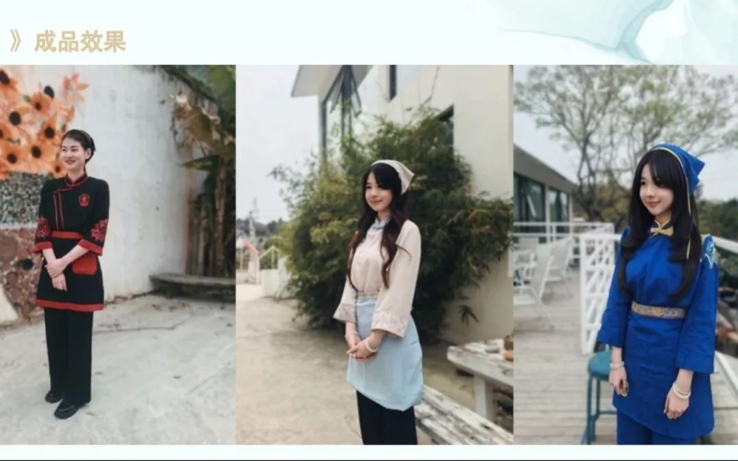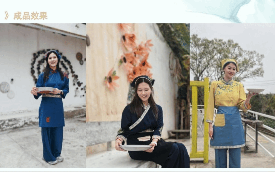 为洞头厨娘量身定制系列服装与IP形象时,金晨怡教授一头扎进洞头田野调研,深度挖掘其文化价值与艺术魅力,而后以精妙绝伦的设计手法,将这些独特的海洋文化元素巧妙融入服装设计之中。从色彩的细致选取,到图案的精巧构思;从面料质感的严苛考量,到款式细节的精雕细琢,每一处设计细节都流淌着洞头独有的文化韵味,同时又巧妙融合现代时尚感。这些匠心独运的设计,不仅为洞头厨娘塑造了全新的形象,更成为推动当地乡村文化建设与经济发展的强劲引擎,全方位提升了乡村的文化软实力与品牌影响力。
