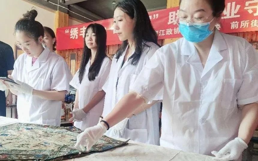 不仅如此,金晨怡教授还积极搭建交流平台,成功举办《传统,智创,复兴——传统手工艺创新与时尚论坛》和《AI时代浙地刺绣发展论坛》。在这些论坛上,专家学者、艺术家们齐聚一堂,共同探讨非遗传承与创新的路径,积极探索AI技术在非遗领域的应用,为织绣技艺的发展开拓了全新视野。与此同时,在山根举办的浙江地区刺绣艺术创新人才培养成果展和鹿城文艺家之家举办的“遥想丝梦”刺绣创新艺术展,同样吸引了众多目光。她还积极推动非遗文化与学术研究、艺术展览等领域的深度联动。在她的悉心指导下,团队研究生将实践经验转化为高质量的学术成果,撰写了一系列相关论文;同时她精心策划的多个非遗主题艺术展,也成为文化界的焦点盛事,让古老的非遗在新时代焕发出蓬勃的生机与活力。