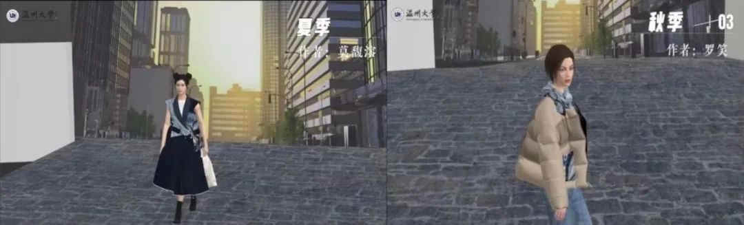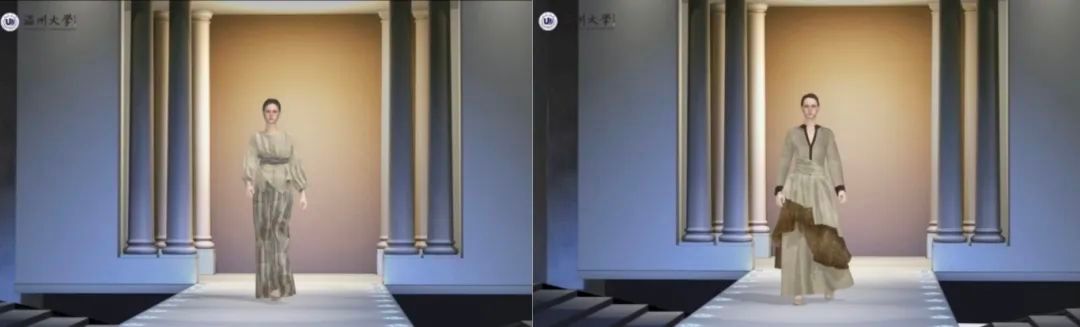 面对数字科技的浪潮,她敏锐捕捉行业变革趋势,在《服装三维设计》课程中率先引入虚拟人模、动态灯光等技术,打造“虚拟时装秀”沉浸式课堂。学生作品《喜迎亚运 鸾歌宛蝶》《追本“塑”源》等屡获“市长杯”中国工业设计大赛奖项,以AI设计、特效设计等数字手段重构传统服饰美学,让非遗文化在虚拟与现实的碰撞中绽放异彩。