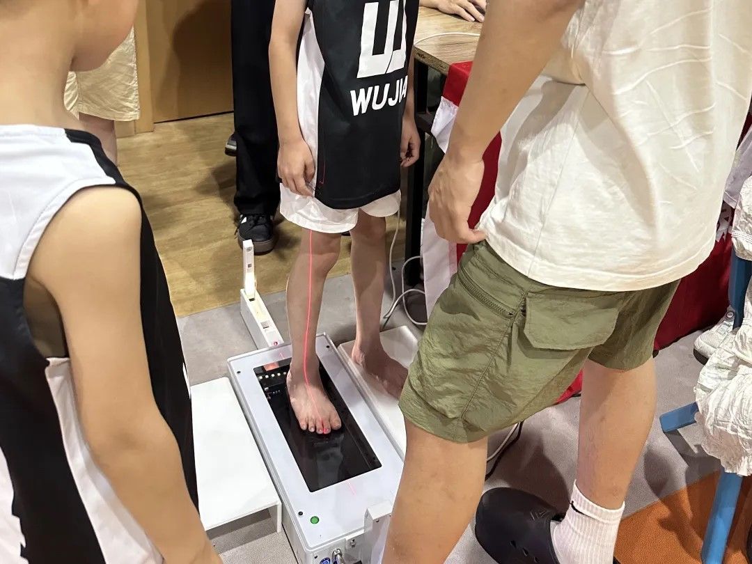 当今社会,青少年足部健康问题日益凸显,相关数据显示,我国儿童扁平足发生率超 50%,且与脊柱侧弯、体态失衡等问题密切相关。为此,筛查队联合温州医科大学足踝研究中心,引入3D智能足测仪B002等前沿设备,构建 “筛查 - 评估 - 干预” 闭环服务体系。